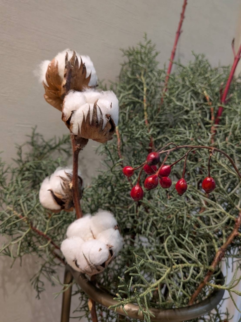 この時期ぴったりのわた(コットンフラワー)が付いています⛄